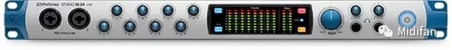 就像 Studio 1810 一樣 Studio 1824 的線路輸出是針對發送控制電壓的直流連接,然后你還可以得到兩個帶獨立混音流立體聲耳機輸出。Studio 1824 還提供了 PNC 字時鐘輸出。