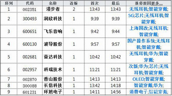 無線耳機+智能穿戴:無線耳機已經進入加速爆發階段,而且資金預期已經起來了,而智能穿戴也是無線耳機炒作的蔓延,隨著游資加速進場,炒作會繼續升溫。