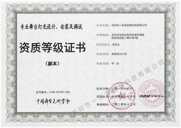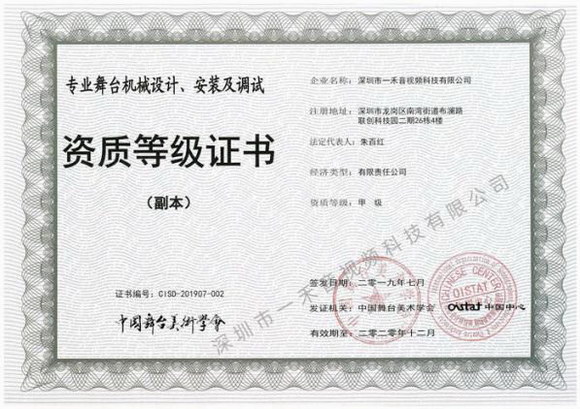 此次能一舉取得中國舞臺美術學會四項甲級資質也是業界少有,同時,擁有這四項甲級資質更是讓一禾科技行業等級和專業水平再上一個臺階,增強一禾科技在同行業中的競爭力。