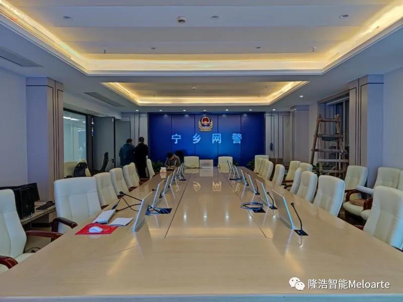 項目簡介:此次項目涉及寧鄉公安局11樓會議室新建,采用數字化,現代化辦公為標準的會議室建造。涉及到子系統有:數字化智能發言系統丶數字擴聲系統丶智能中央控制系統丶高清顯示系統等。考慮到會議室部分的品牌形象高端,經過前期的現場考察,項目技術交流,會議音頻部分由廣州市隆浩智能科技有限公司負責。