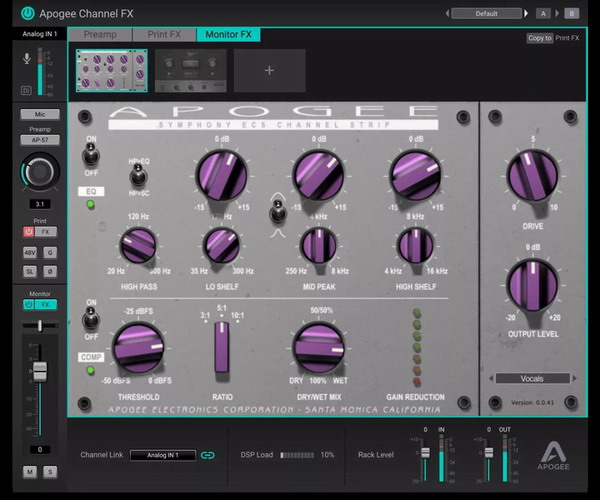 3種錄音工作流:Print FX、Monitor FX和DualPath Link在Apogee Channel FX 中全部功能可用。