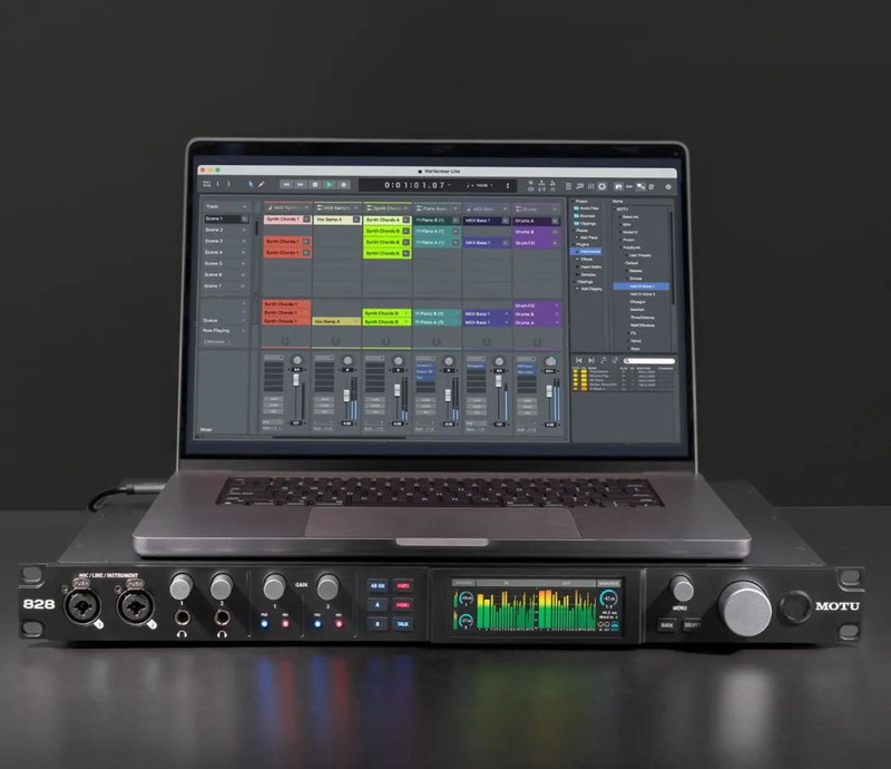 全新設計的 MOTU 828 采用 USB3 連接,可與 Mac、PC 或 iOS 設備兼容。它配備了極低延遲的高性能聲卡驅動,可提供 60 個音頻輸入/輸出通道。其卓越的模擬性能由知名的 ESS Sabre32™ DAC 技術驅動。其 24 通道混音和板載效果處理包括混響、4 段均衡和壓縮。兩個組合式“話筒/線路/樂器”輸入可提供音質干凈的前置放大,并具備獨立的增益、衰減、幻象電源以及用于外部設備的發送/返回接口。控制室功能包括對講、靜音、單聲道和 A/B 揚聲器切換按鈕。高級功能包括光纖擴展模式、字時鐘輸入/輸出/直通、踏板輸入控制、MIDI 輸入/輸出/直通,以及通過 Wi-Fi 使用手機或平板電腦進行控制。