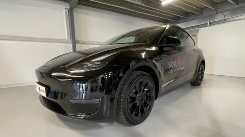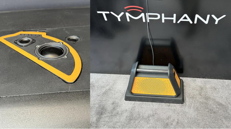 以特斯拉Model Y為例,搭載了經過聲學調校的系統,并保留了原廠音頻系統用于對比。Sonified系統利用了特斯拉原有的三個中頻揚聲器和兩個高頻揚聲器,而將門板揚聲器關閉,并將兩個面板揚聲器置于中控臺側邊的地毯后部;同時,貨物區域的低音炮被替換為隱藏在前排座椅下方地毯內的兩個緊湊型低音單元。此外,每只前排頭枕內還安裝了兩個超聲波揚聲器,它們能在人類聽覺范圍內提供全頻響應,從12,000Hz直至60或80Hz(遠低于傳統小型揚聲器所能達到的最低130Hz),從而在消除路噪和胎噪方面表現更出色。當播放音樂時,聲音處理過的面板揚聲器帶來了更為溫暖且飽滿的音色,低音鼓點“踢擊”力度亦更顯犀利,這或許是因為相較于中央帶有驅動器的傳統圓頂揚聲器產生不同的動態反應,整個剛性面板同步發聲。而頭枕揚聲器在振動間觸動發絲,若乘客頭部靠近,更能體驗到專屬于個人的立體聲場效果。