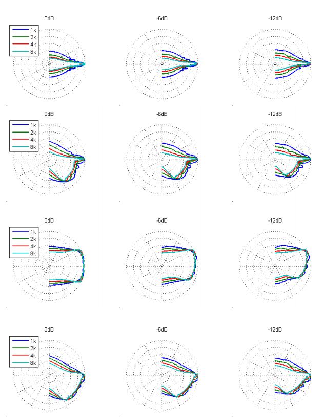 圖 1:不同增益情況下陣列的極坐標響應 (10dB/div.)