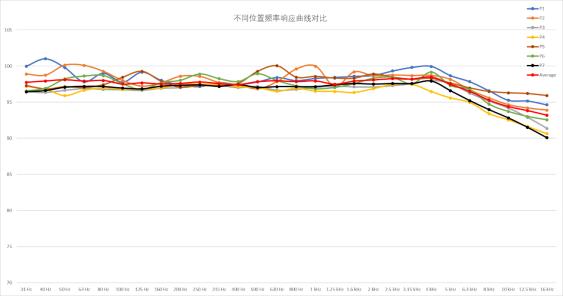 圖 5:藝海劇院全場七個不同位置的頻率響應曲線和七個位置示意圖