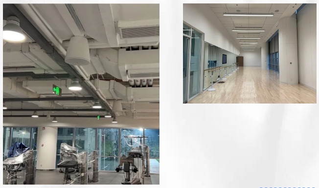動感單車和劃船、瑜伽和舞蹈室對于聲音的要求與會議室和教室相比有著明顯的差別,它需要豐富的頻率響應范圍和足夠的動態,讓學生與教師能全身心的投入校園生活。為應對此需求,我們選用 DesignMax DM3C 與低音 DM8C-SUB 為場地提供優秀的背景音樂擴聲,該組合不僅滿足了聲音均勻覆蓋全場的需求,還保證了整個系統有充足的低頻動態。在“工業風”裝修的健身房內,我們選用了更加符合該環境的垂吊式揚聲器 DesignMax DM3P 與低音 DM10P-SUB,該組合在滿足高品質聲音效果的情況下,還與健身房裝飾環境完美貼合。